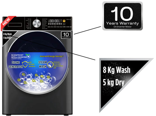 Scanfrost Front Load Wash & Dry 8/5Kg Grey (SFWD85INVME) Inverter