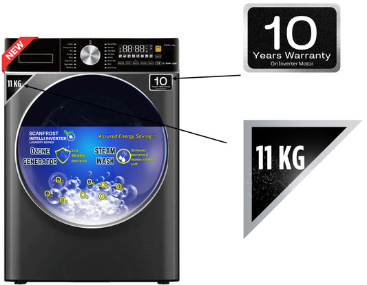 Scanfrost Inverter Front Load Washing Machine 11Kg Grey (SFWMFL11000INVME)